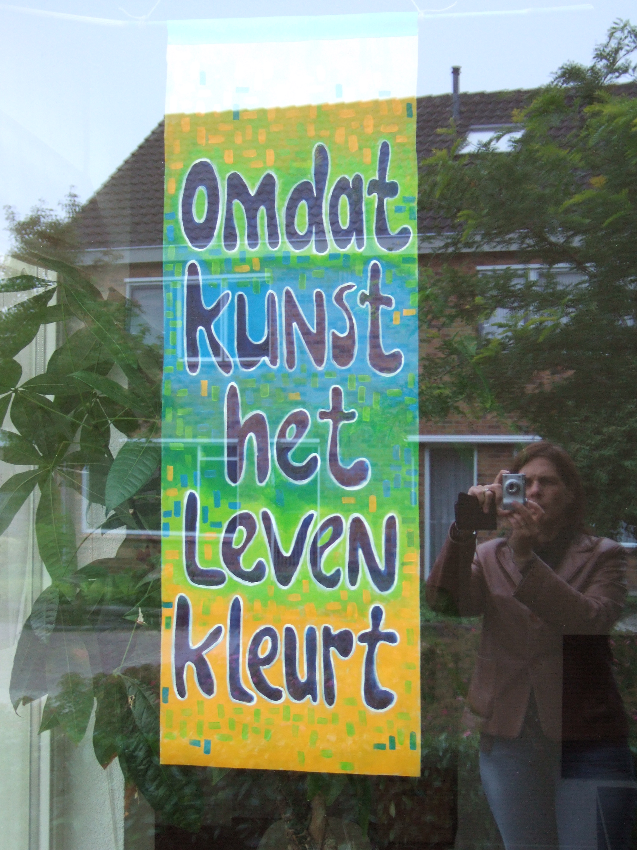 Maar de "eyecatcher" om voorbijgangers alvast nieuwsgierig te maken hangt al voor het raam.
