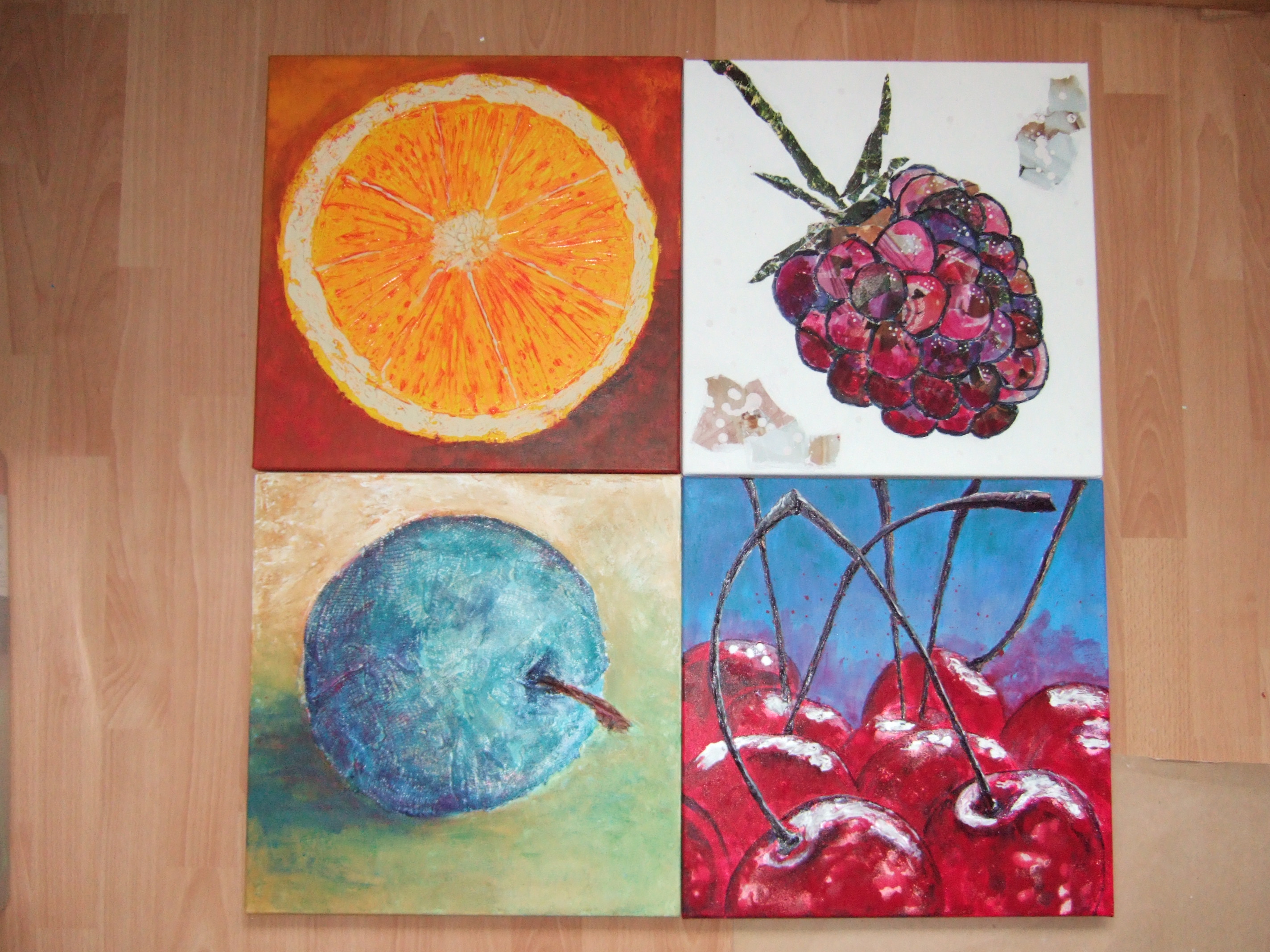 6 maart 2009Een gevaarlijke combinatie kunstenaarsschap en moeder zijn van twee kinderen in de basisschoolleeftijd. Zodra de projectweek om de hoek komt kijken weten ze je dan te vinden ... Het thema van de projectweek van de basisschool waar mijn kinderen naar toe gaan is "op je gezondheid". Dus ging ik maar aan de slag om diverse stukken fruit te vereeuwigen in heel verschillende technieken die ik daar ter plekke ook nog zal demonstreren.